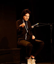 Une entreprise narcissique impossible qui voit affluer, en miettes et fragments, des souvenirs d'enfances et des fantasmes obscurs, dans une esthétique brouillonne assumée, à la frontière de l'art expérimental et de la pratique amateur. La scène devient alors le théâtre d'une lutte étrange entre FLAVIEN et sa propre représentation, jusqu'à devenir le cimetière poétique de ses identités.