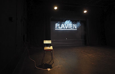 Une entreprise narcissique impossible qui voit affluer, en miettes et fragments, des souvenirs d'enfances et des fantasmes obscurs, dans une esthétique brouillonne assumée, à la frontière de l'art expérimental et de la pratique amateur. La scène devient alors le théâtre d'une lutte étrange entre FLAVIEN et sa propre représentation, jusqu'à devenir le cimetière poétique de ses identités.